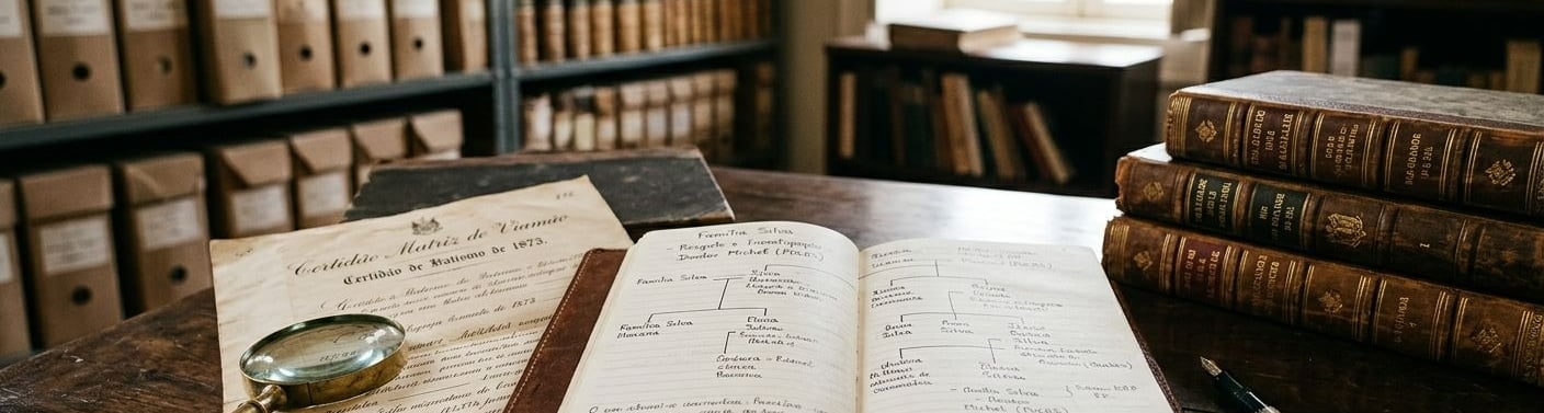 Mais do que apenas montar uma árvore genealógica, nosso objetivo é reconstruir a jornada de seus antepassados — suas origens, migrações e o legado deixado através das gerações. Utilizamos bases de dados nacionais e internacionais, arquivos paroquiais e registros públicos para entregar um dossiê detalhado sobre a sua ancestralidade.